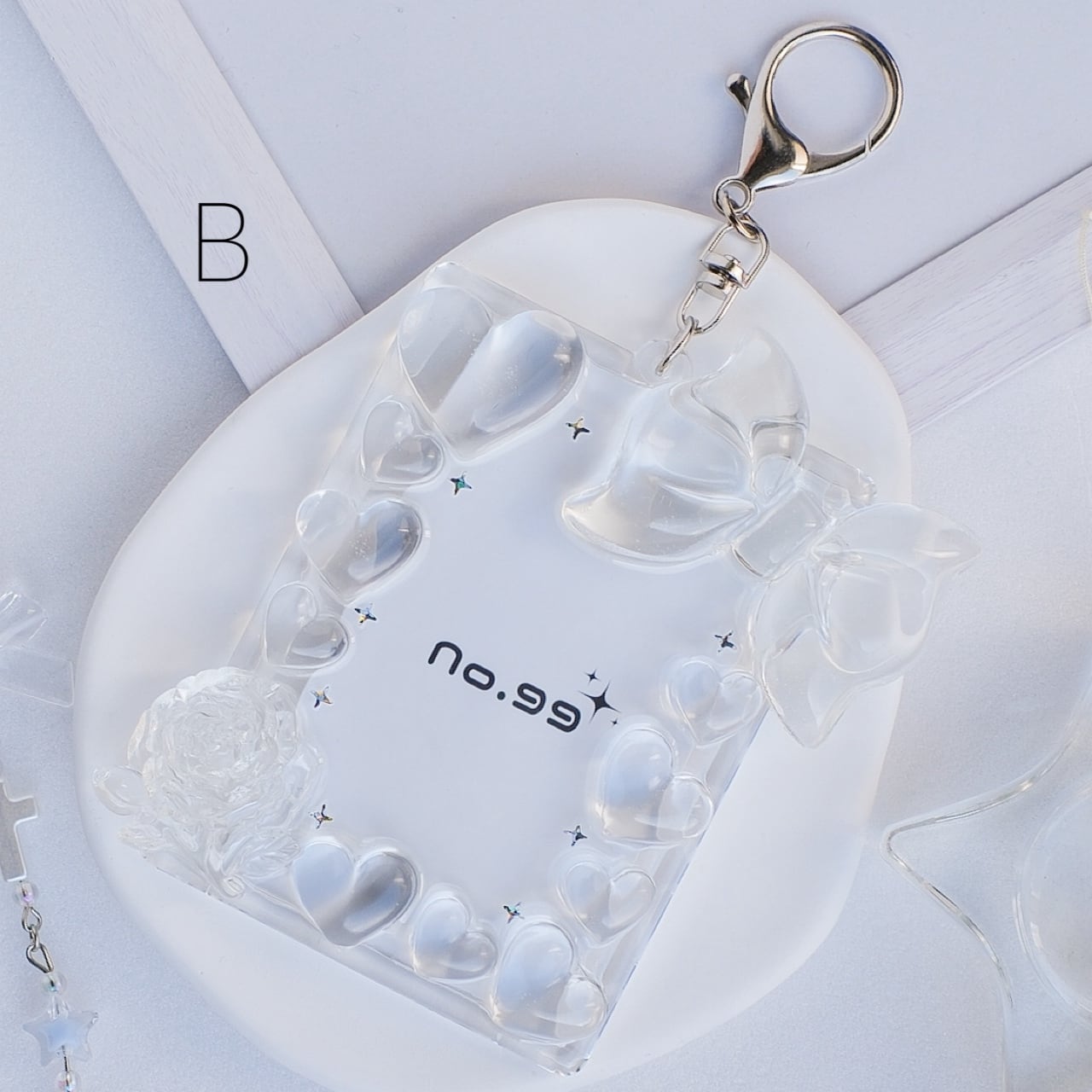 リボンがポイントの透明感トレカキーホルダーです♡